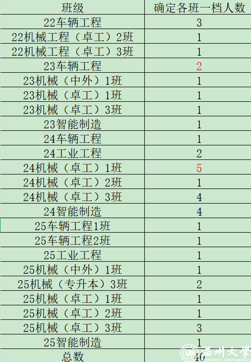 根据计算规则,我院一档名额为40人,二档全覆盖。其中各班级可评议一档人数见下图。