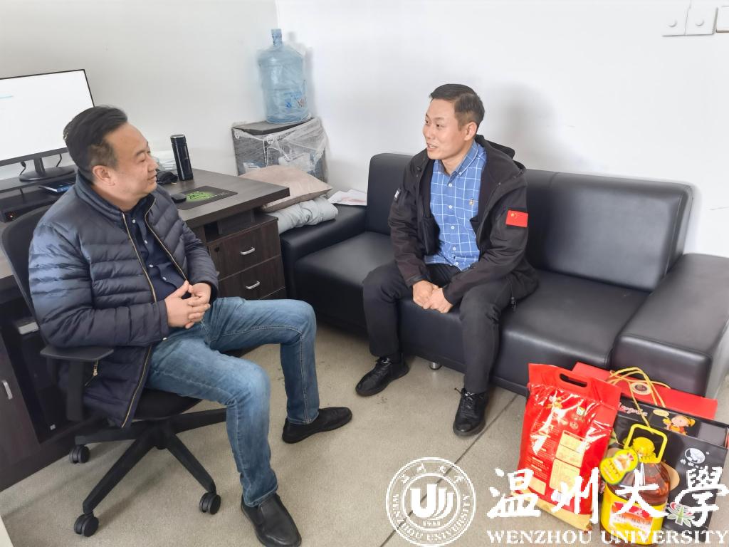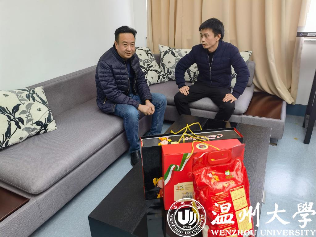 在退休院长姜苏宾老师家里,周荣书记介绍了学院近年来的发展状况,并诚挚邀请他经常回学校看看,为学院的发展多提宝贵意见。随后,周书记分别又与退休的张兆胜、陆光华、叶忻泉、陈颖等4位老师进行交谈,关心他们退休后的生活,并送上节日的祝福。张大伟老师退休后搬到了南京,便采取了线上慰问的方式,周荣书记和孙兵涛老师都分别给张老师打了电话,慰问品则直接邮寄到家。