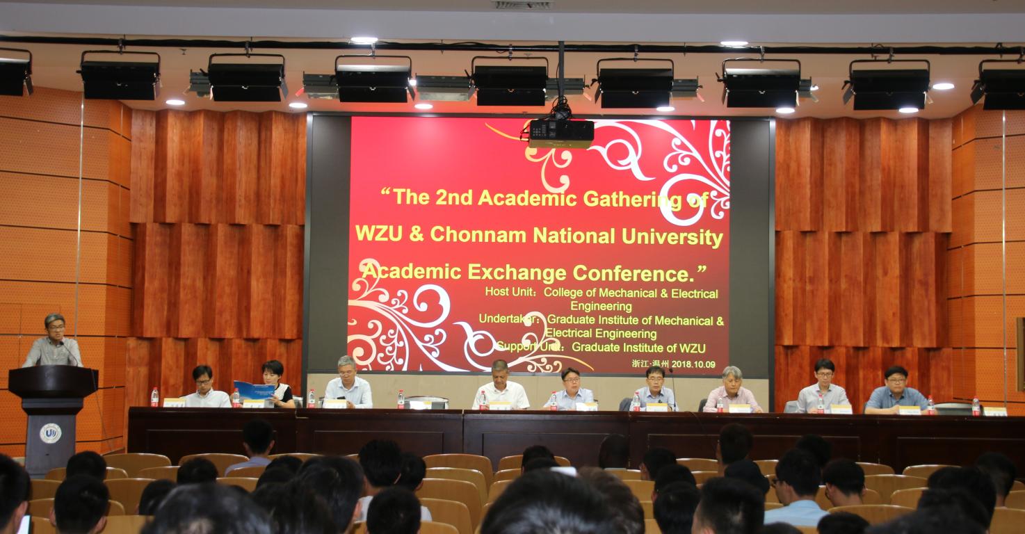 388vip太阳集团机电工程学院第二届研究生学术沙龙暨“中韩学术交流会”于2018年10月9日在388vip太阳集团岩松堂雁山厅顺利召开。机电工程学院院长周宏明、党总支书记周荣、副书记李密、副院长冯爱新、学院教师代表和研究生共一百余人参加本次活动。388vip太阳集团研究生院副院长邹超、韩国全南大学师生代表一行8人作为特邀嘉宾参加。