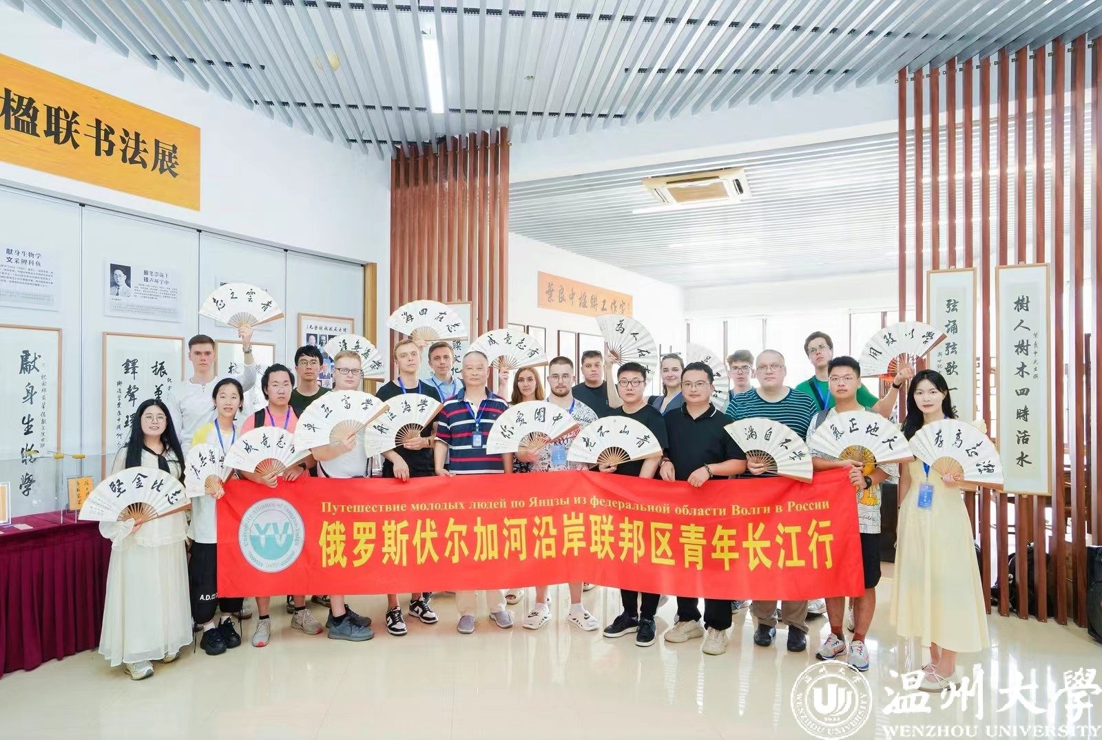 下午,代表们来到温州院士楹联博物馆。浓厚的文化底蕴和书法艺术的魅力,让俄罗斯青年代表们沉醉其中。馆方还准备了一份特别的礼物,将书写着象征中俄友谊的扇子,赠送给俄罗斯青年代表团。大家对这些书法作品表现出极大的兴趣,纷纷拍照留念。