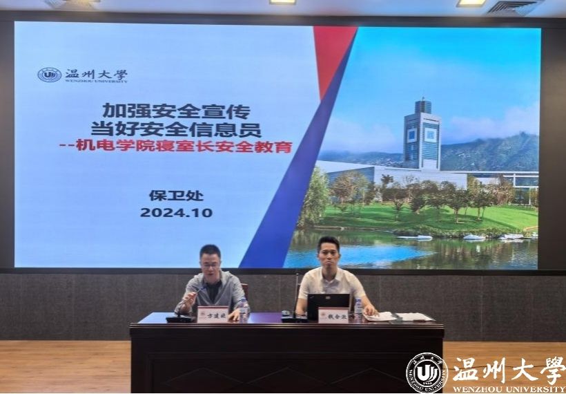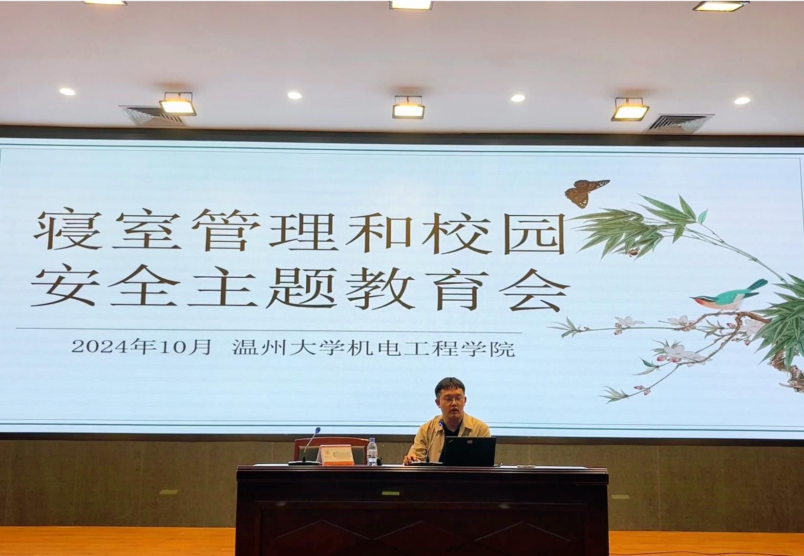 为了营造良好的学生公寓风气与纪律,引导学生严格遵守学校的规章制度和消除校园安全隐患,机电工程学院于2024年10月8日晚上18时30分,组织学院21-24级全体学生寝室寝室长在步青厅开展2024-2025学年学生安全教育系列活动。学校安全保卫部副部长钱合激、机电工程学院副书记方建晓及全体辅导员、学生宿舍寝室长参加本次活动,活动由机电工程学院副书记方建晓主持。