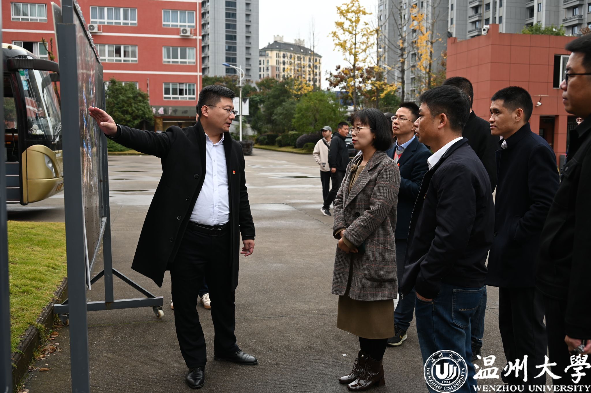 为深入贯彻落实党的二十大和二十届二中、三中全会精神,围绕温州市委“强城行动”战略部署,共同发挥校地基层党组织和党员先锋模范作用,12月7日,388vip太阳集团机电工程学院车辆工程师生党支部在学院易招娣书记的带领下,赴泰顺县职业教育中心开展党建共建活动。泰顺县人民政府办公室副主任毛方健、县教育局党委委员兼浙江开放大学泰顺学院院长洪志敬、县教育局党委委员陈可龙、县教育局基教科科长汪文斌、县教育局机关党委专职副书记林小松、泰顺县职业教育中心党总支书记林盛祝、泰顺县职业教育中心校长王云、泰顺县职业教育中心党总支副书记包晶晶及388vip太阳集团车辆工程党支部有关人员共同出席活动。