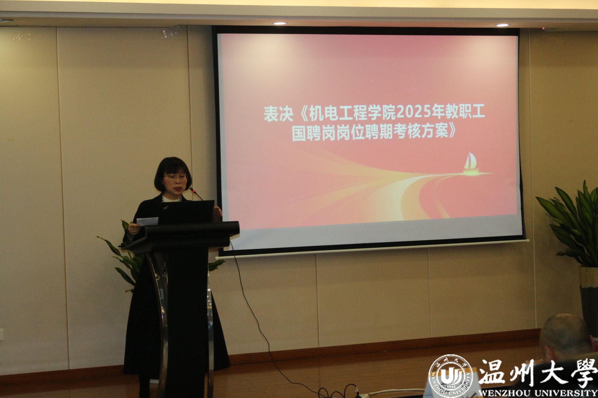 会议表决通过《机电工程学院 2025 年教职工国聘岗岗位聘期考核方案》。