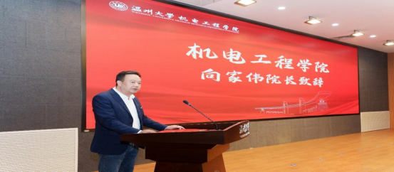 机电工程学院院长向家伟致辞。向家伟院长介绍到本届“科技之光”活动月将包含优化设计大赛、CDIO智能家居设计大赛、智能汽车创意设计大赛、科创之星大赛等一系列活动,并希望同学们通过“科技之光”活动将理论学习与实践相融合,融会贯通,提升科技创新能力。