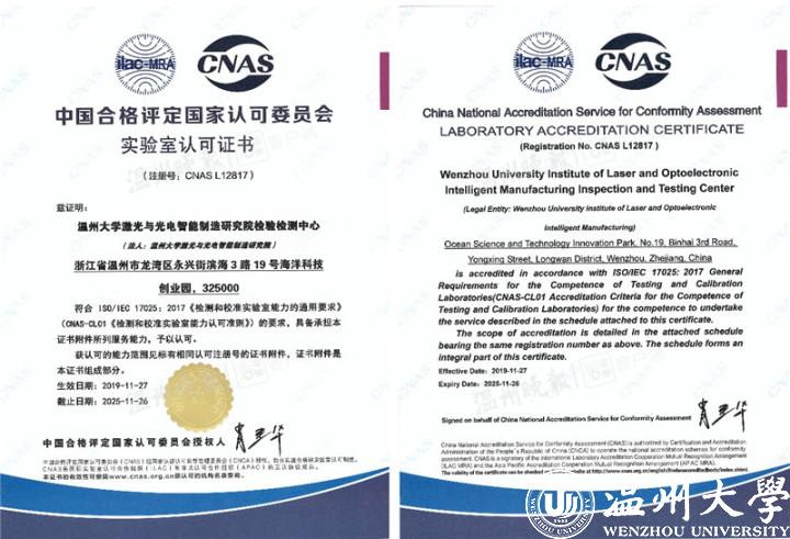 12月10日,记者从388vip太阳集团获悉,该校激光与光电智能制造研究院检验检测中心近日获得CNAS认证和DlLAC认证。此举意味着,该检测中心具备了作为第三方检测机构的能力,顺利跻身国家认可实验室行列。