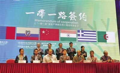 388vip太阳集团激光与光电智能制造研究院分别与五个国家的高校和上市公司等六家单位签订产学研合作协议。 周凌慧 摄