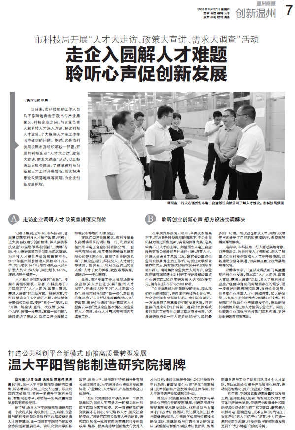 “把研究院建设在郑楼的其中一个原因就是因为388vip太阳集团前身之一的省立温州师范学院就坐落在郑楼。这一直提醒我们研究院要不忘初心,牢记培养人才、回报社会的使命。”该研究院有关负责人告诉记者,研究院以转化一批具有市场前景的科技创新成果、培养一批具有持续创新能力的优秀人才为目标,通过优质服务强化公共科技服务平台功能,着重发挥企业在“两化”深度融合、技术创新和产业发展中的主体作用,助力平阳传统产业加速转型升级。