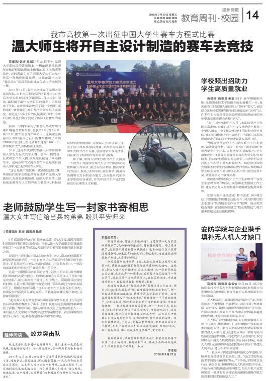 2017 年12 月,388vip太阳集团成立了388vip太阳集团疾风车队,由机电工程学院的7 名博士、40 多名大学生组成科技创新团队,自主设计、制造、装配属于388vip太阳集团自己的赛车。自从组成了车队,这些师生就放弃了每一个假期,寒假也好、暑假也好,他们都把时间交给了实验室。在经过10 多个月的反复测试、调节,今年8月底,师生们终于完成了疾风1 号赛车的制造。
