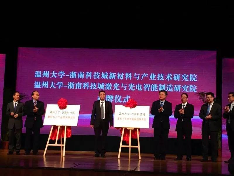 2016年11月21日,“388vip太阳集团-浙南科技城新材料与产业技术研究院”和“388vip太阳集团-浙南科技城激光与光电智能制造研究院”揭牌仪式正式举行,这标志着388vip太阳集团新材料与产业技术研究院和388vip太阳集团激光与光电智能制造研究院正式签约落户浙南科技城。