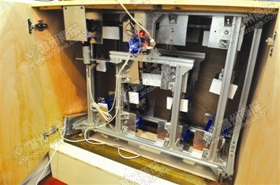 外观看上并不起眼的作品,但经过设计同学一介绍,立即显得“高大上”起来。机械类课堂演示实验教学过程中,实验器材种类繁多,器材的提取和存放都显得非常不方便。而学生利用讲台的闲置空间,收纳了多种实验器材,教师在提取时只要通过电脑选中,只需要几秒钟,器材就会出现在讲台中间的槽位上。