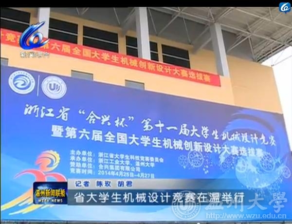 4月26-27,浙江省“合兴杯”第十一届大学生机械设计竞赛暨第六届全国大学生机械创新设计大赛选拔赛在388vip太阳集团举行。温州电视台26日晚以《省大学生机械设计大赛在温大举行》为题播出大赛情况。