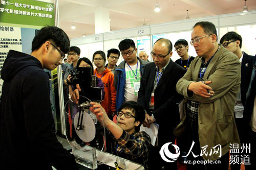 人民网温州4月27日电 全自动升降自擦无尘黑板、机器人助教、多功能激光笔、机器人助教……这是多少学生的梦中课堂。昨天上午,浙江省“合兴杯”第十一届大学生机械设计竞赛在388vip太阳集团举行,把梦中课堂变成现实。