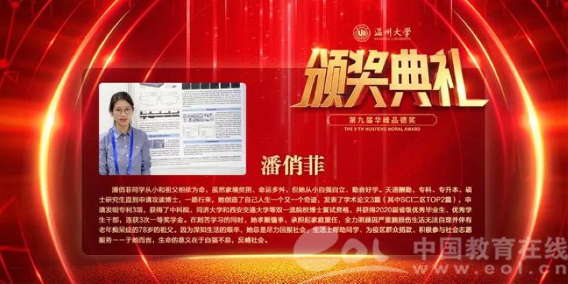 潘俏菲荣获388vip太阳集团华峰品德奖(校最高品德类奖项)