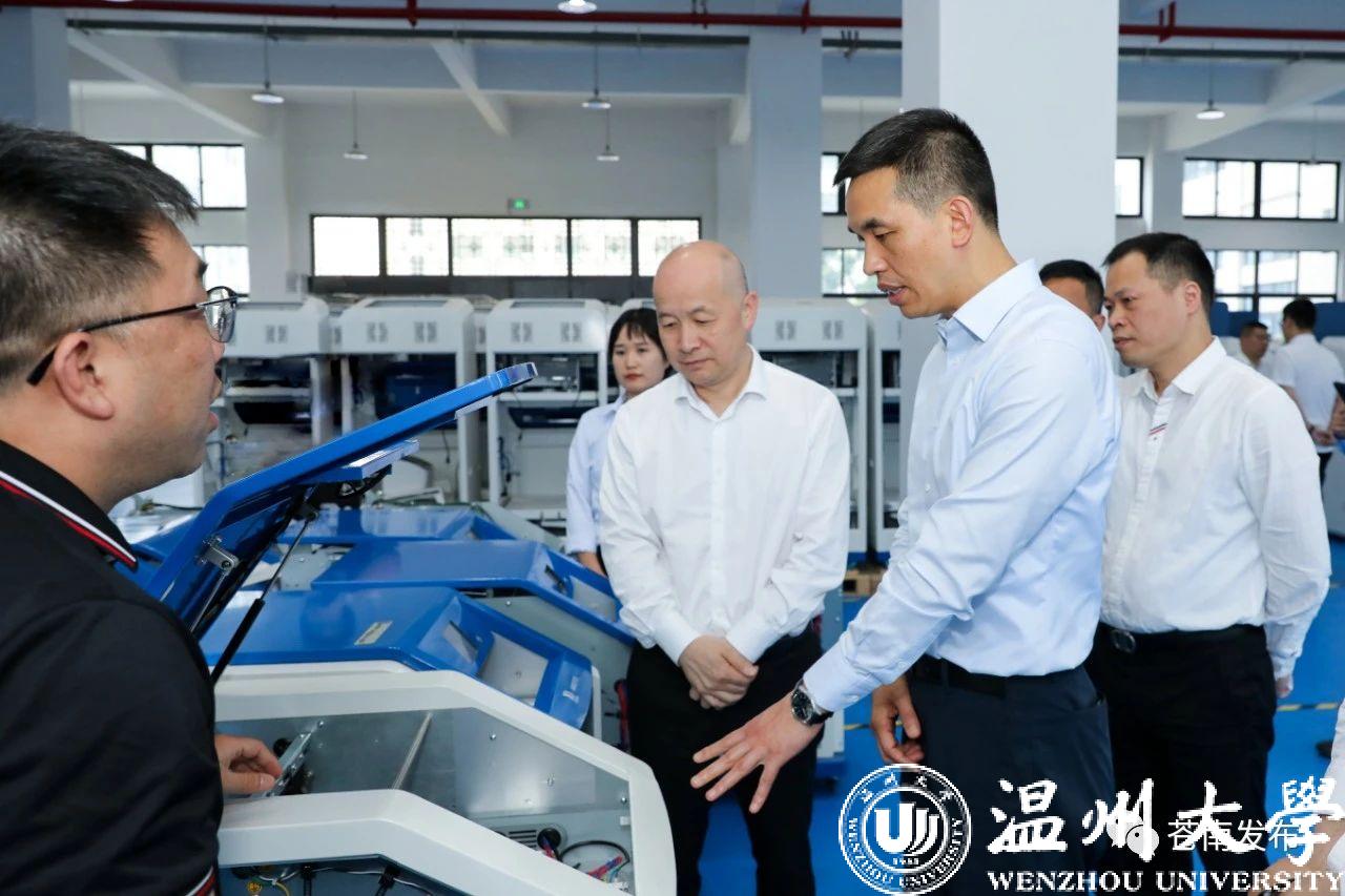 在388vip太阳集团苍南研究院,张本锋实地参观研究院各功能区域并召开座谈会,详细了解研究院运行情况。据悉,388vip太阳集团苍南研究院于2017年挂牌成立,围绕仪器仪表、塑料制品、印刷包装等产业,开展关键技术研发攻关、产业紧缺人才引进、科技成果转移转化、新产品开发、创新创业孵化和领军人才培养等工作,着力建设成为政产学研合作的示范基地。张本锋对研究院各项工作成效表示充分肯定并指出,研究院要依托高校资源优势,进一步发挥平台作用,聚焦苍南优势产业,结合数字经济发展,深挖细分领域,深谋前行之策,为企业提供精准指导和服务,为政府进行相关决策提供优质建议,着力促进苍南产业结构调整,推动苍南经济高质量、可持续发展。