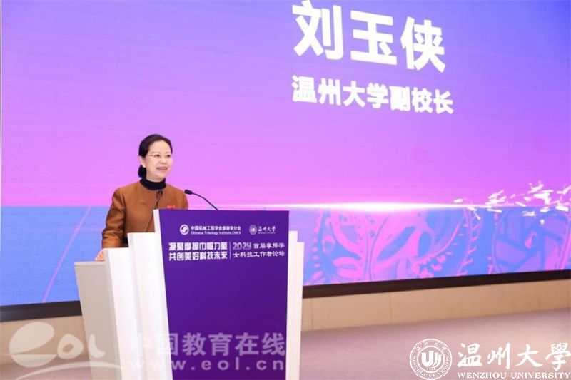 中国教育在线浙江站讯 (记者 陈显婷 通讯员 温大萱)"凝聚摩擦巾帼力量 共创美好科技未来"。3月30日,2024首届摩擦学女科技工作者论坛在浙江温州开幕。中国机械工程学会摩擦学分会理事长、西南交通大学副校长周仲荣教授,中国机械工程学会副秘书长左晓卫,388vip太阳集团副校长刘玉侠出席开幕式并致辞。中国机械工程学会摩擦学分会副主任委员兼总干事顾卡丽研究员主持开幕式。