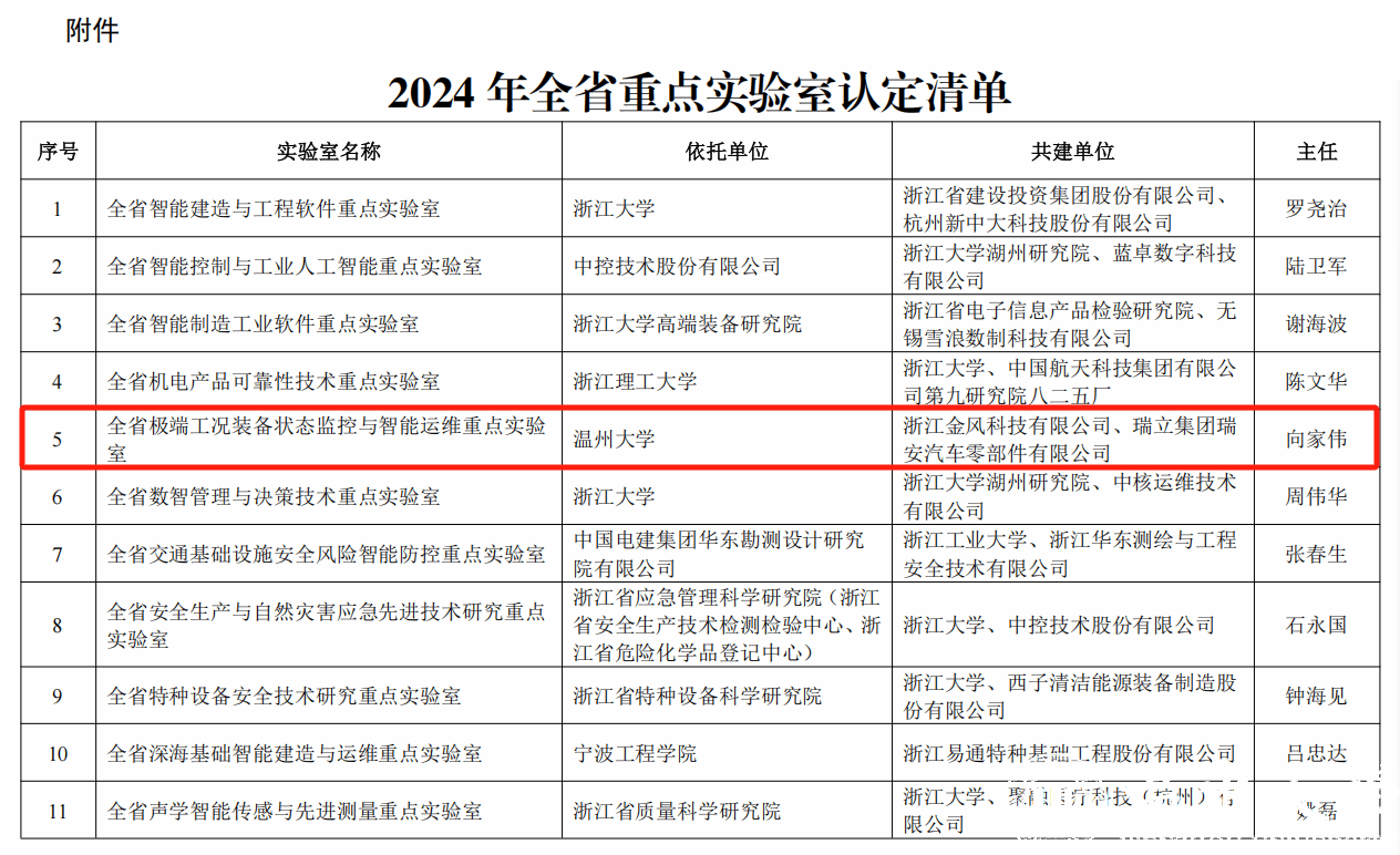 近日,浙江省科学技术厅公布 2024 年全省重点实验室认定结果,388vip太阳集团机电工程学院申报的全省极端工况装备状态监控与智能运维重点实验室,凭借在高端装备运维领域的突破性研究和扎实的产学研基础,从全省数百个申报单位中脱颖而出,成功获批。