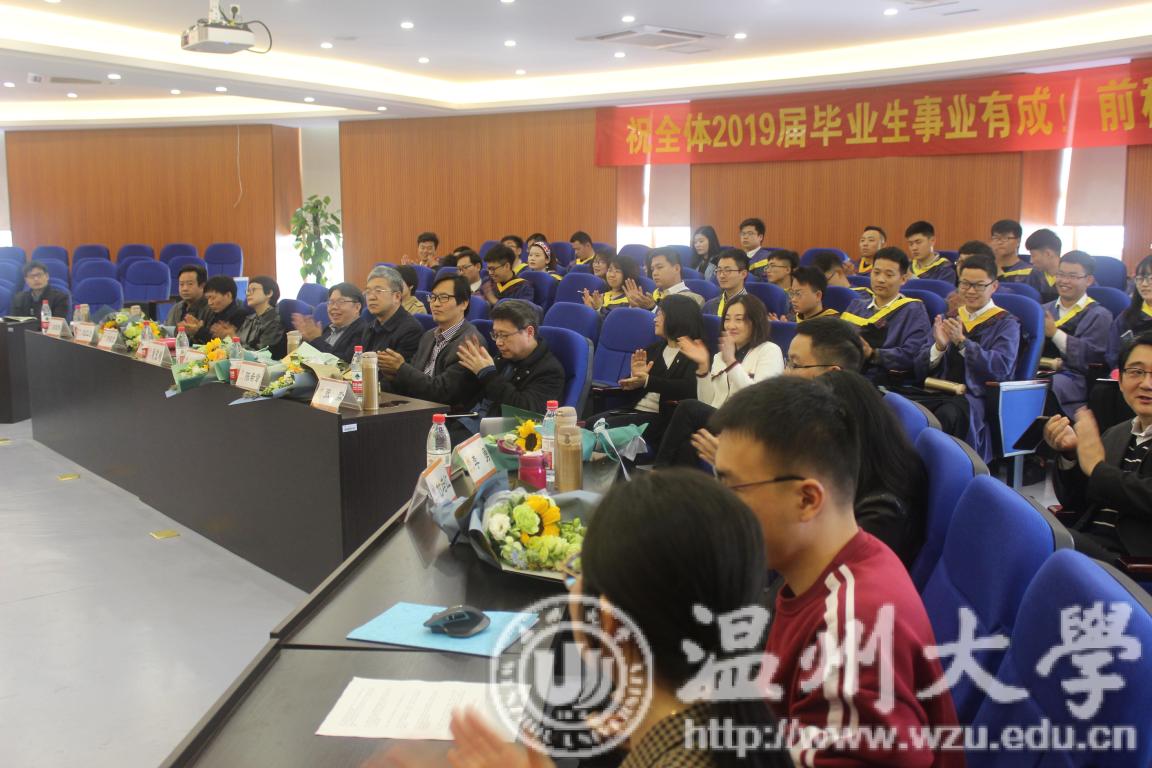相逢即是一首歌,全体硕士毕业生用一首《明天会更好》开启了本次欢送会的篇章,诉说着这些年的青春,也寄托了对未来的憧憬。三年的成长当然离不开老师的谆谆教诲,毕业生们录制了一段VCR来表达他们对导师们的感谢与不舍。在VCR播放结束后,毕业生代表叶栋上台发言,他用自己铿锵的声音来讲述这值得眷恋、值得珍藏、值得感恩的三年。言毕,毕业生代表们纷纷为导师们进献鲜花,来感谢这些年对他们的栽培之情。临别之际,导师们也有许多话想对毕业生们说,于是他们录制了一段视频来表达自己对毕业生的不舍。随后是导师送礼环节,学院的老师们向毕业生们送出精心准备的保温杯,希望浓浓的师生情如同这保温杯一样,温情永驻。紧接着,周荣书记上台讲话,他祝愿所有的毕业生们都能前程似锦,将来能用傲人的成绩来纪念这非凡的三年。最后周宏明院长上台讲话,对毕业生们表达了他最虔诚的祝福,望所有的毕业生们都能实现自己的人生价值,敢于追梦,奋勇前行。最后,全体硕士研究生毕业生导师代表及毕业生移步到B201会议室参加毕业欢送会。导师和毕业生畅所欲言,回顾三年校园生活中难忘的点点滴滴。导师对毕业生表示祝贺以及浓浓的祝福,毕业生也表达了对导师由衷的感谢,对学院发展的提了一些意见以及祝愿。