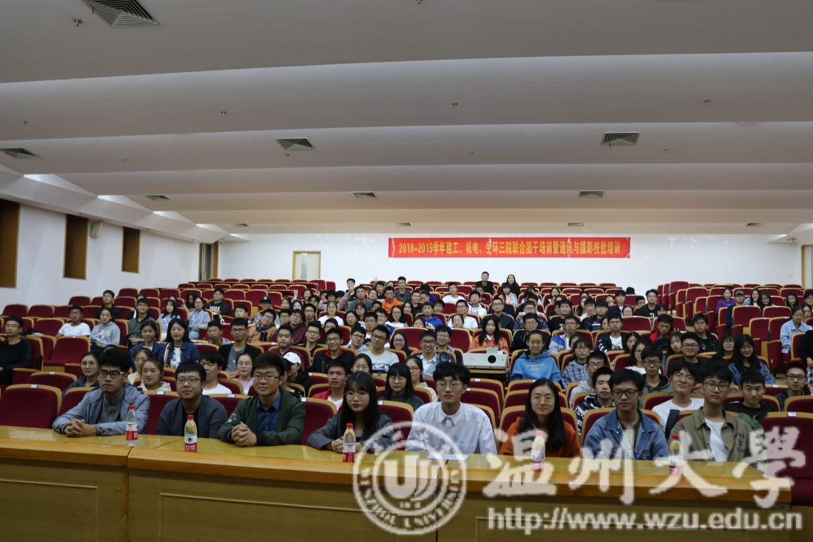 2018年11月9日,由机电工程学院、建筑工程学院和生命与环境科学学院三院联合举办的团干培训------通讯、摄影培训在岩松堂步青厅举行。出席本次培训的嘉宾有388vip太阳集团教师教育学院胡铸鑫老师、388vip太阳集团校记者团主编徐嘉璟、三个学院团委学生会主席及全体培训学员。