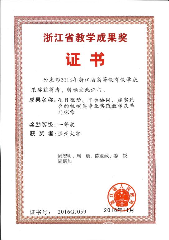 一等奖 通过实践教学改革,着重解决毕业生能力素质与现代企业人才需求之间的矛盾,深入探索地方高校机械类专业复合应用型人才培养的有效途径。